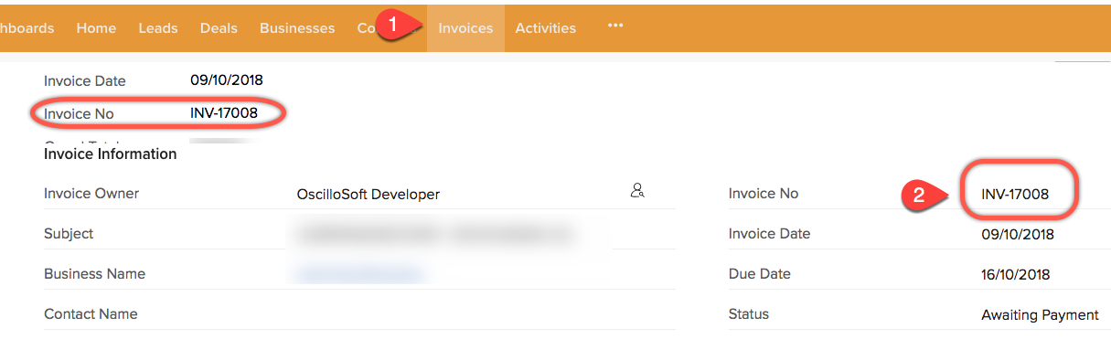 If you create the invoice in Xero then sync to Zoho then you will have two Invoice numbers in your CRM record as Xero Invoice number cannot be inserted in Zoho Invoice ID. To handle this exception we keep both invoice number from both applications.