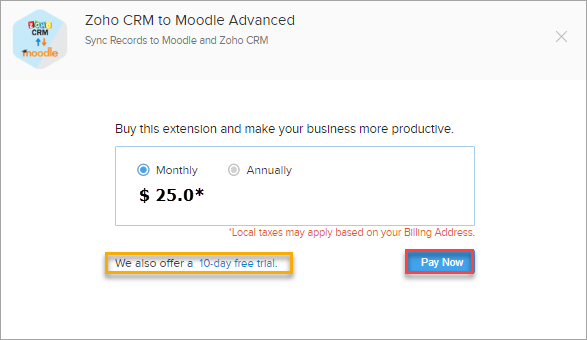 Zoho CRM Product module fields with Moodle Course fields and click